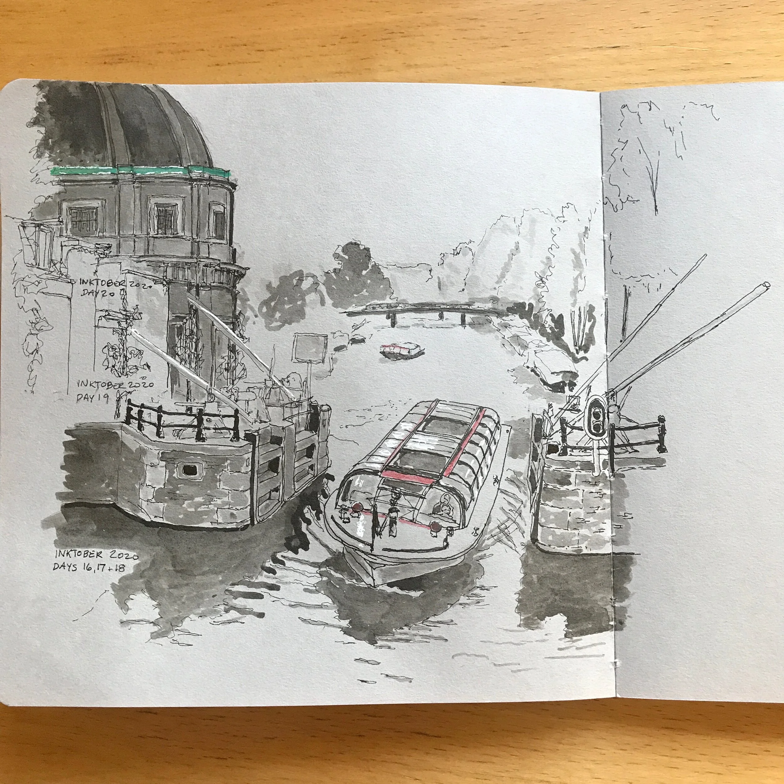 I challenged myself to draw for at least 30 minutes a day using photographs I took on a trip to Amsterdam last year with the additional goal to try to use something from every photo. I’ve been mostly successful with using every picture, but some have been more challenging to figure out how to include. Those few I’ve skipped over I’m keeping in the back of my mind to perhaps use later.