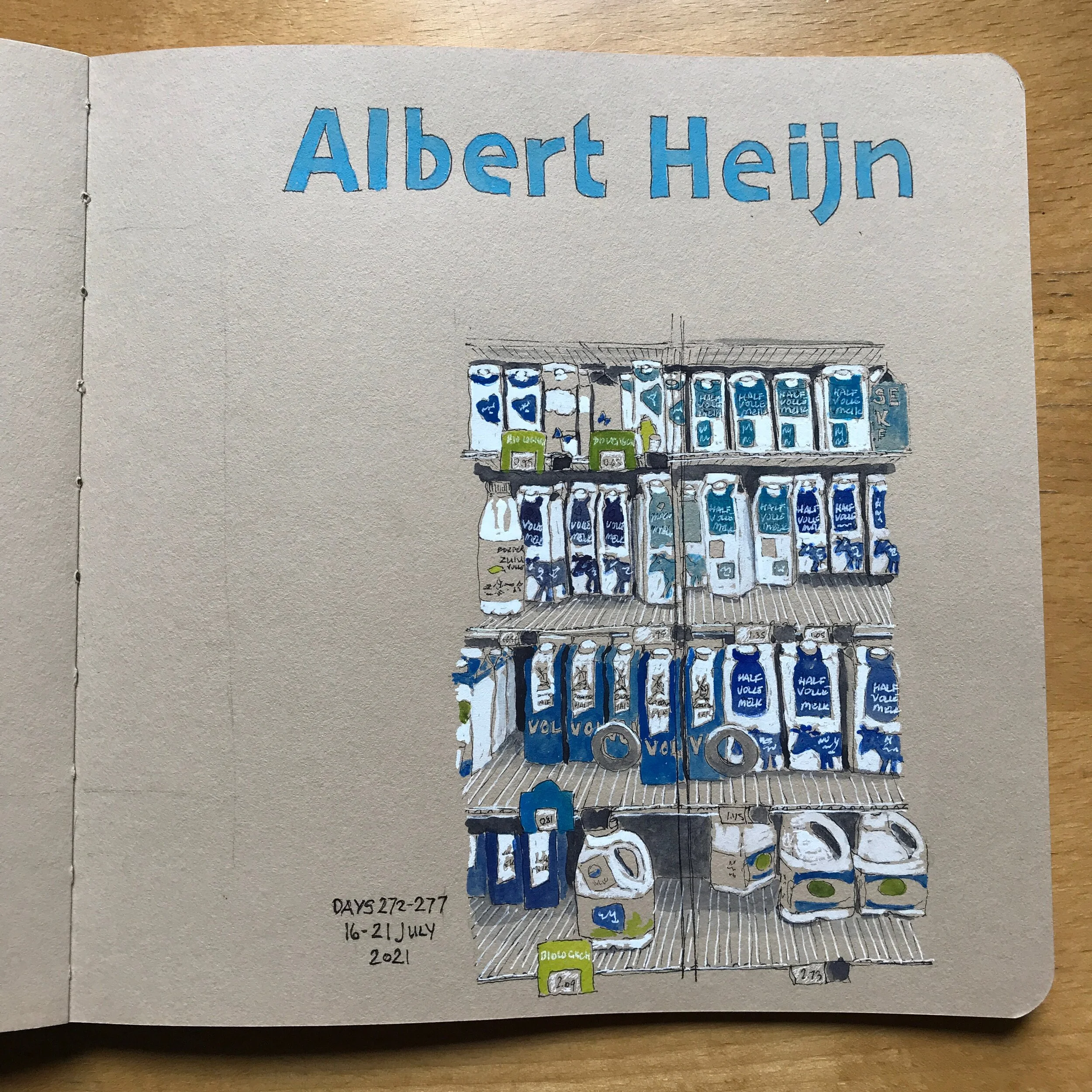 #amsterdam #albertheijn #grocerystore #milkdisplay #milkpackaging #packaging #melk #milk #30minutesaday #traveljournal #dailies #drawingdaily #sketchingdaily #dailysketching #wip #creativeprocess