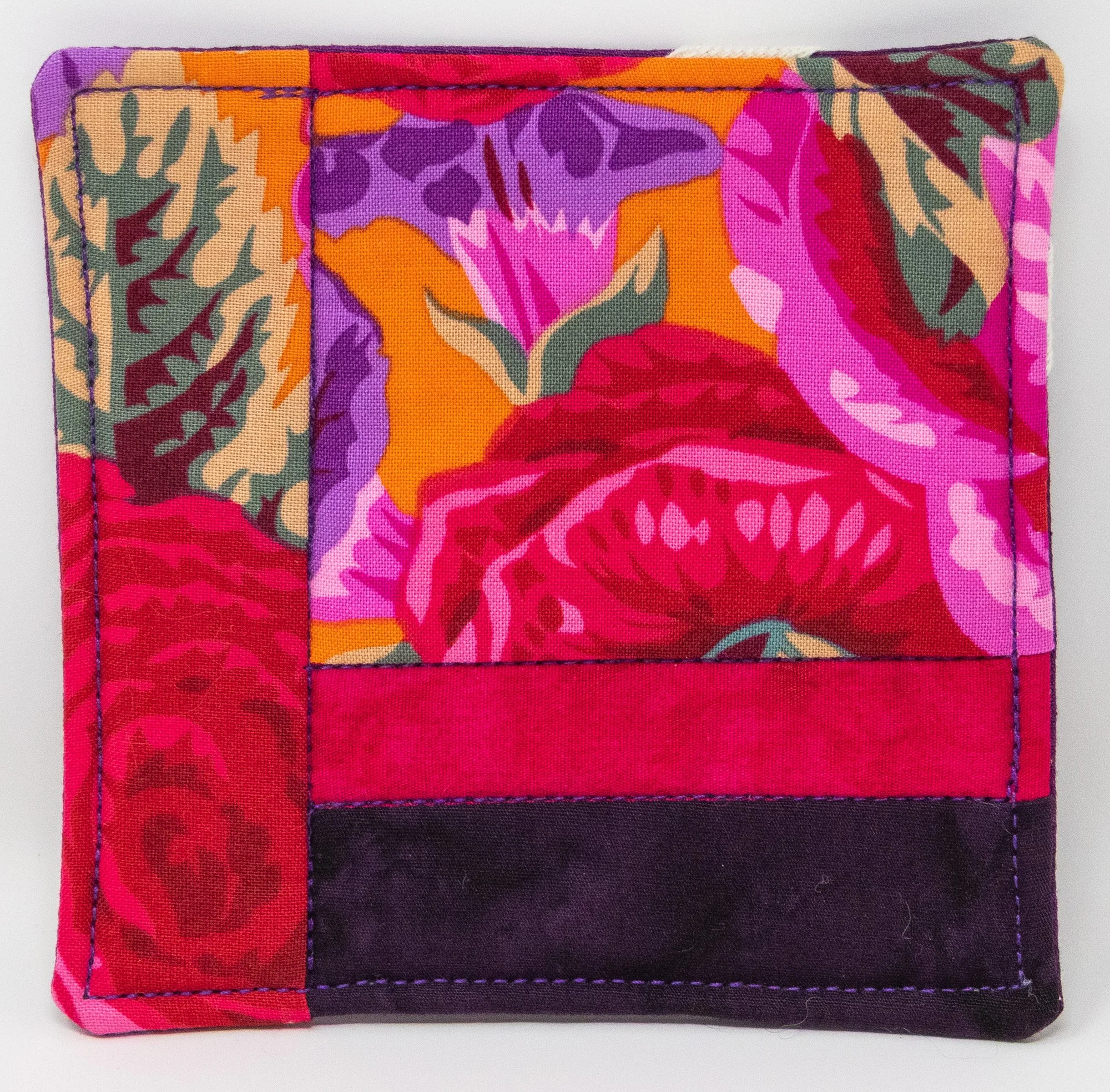 Set of 4 Quilted Fabric Collage Coasters with Yellow, Pink and Orange Florals